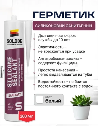 Герметик силиконовый санитарный SOLIDE белый 280мл