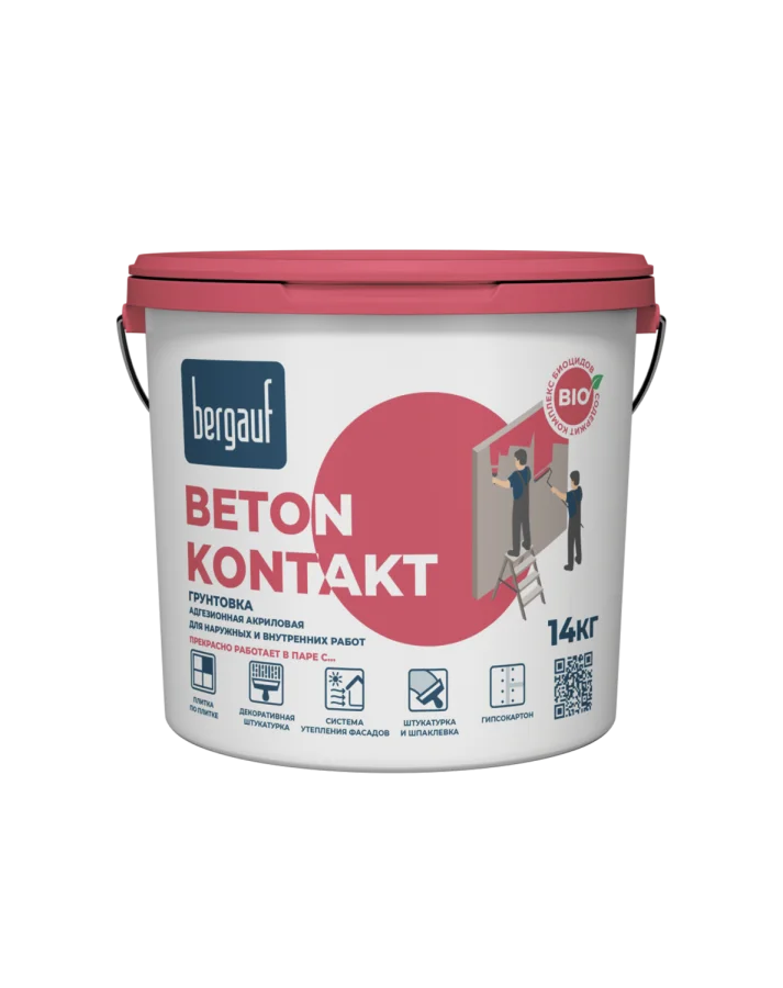 Грунтовка адгезионная BERGAUF Beton Kontakt для внутр/нар работ, 14кг