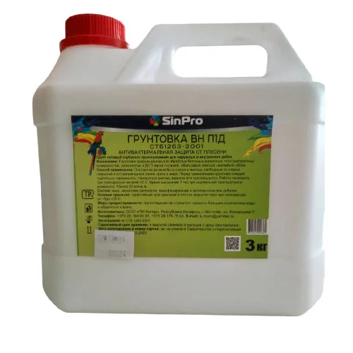 Грунтовка SinPro готовая, антибактериальная защита от плесени 3 кг