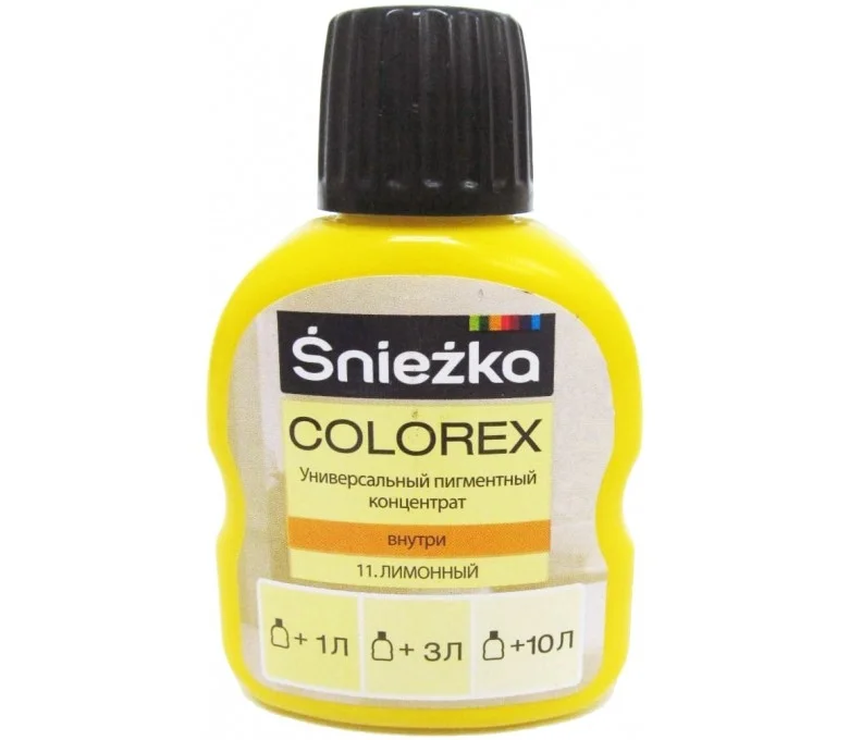 Краситель Colorex - водная дисперсия пигментов с добавлением вспомогательных средств, которые также позволяют сочетать его с изделиями на основе растворителей. Концентрат предназначен для расцветки избранным цветом готовых водорастворимых красок и красок на основе растворителей: эмульсионных, масляно-фталевых, клеевых, нитроцелюлозных, хлоркаучуковых. Некоторые из имеющихся цветов можно применять вне помещений.