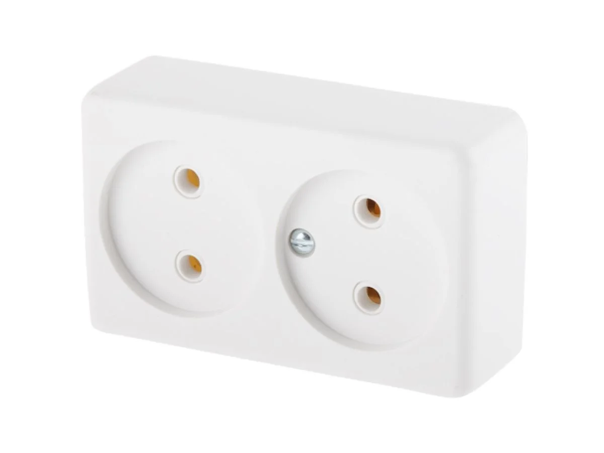 Розетка 2-ая (открытая, б/з) белая, ЮПИТЕР